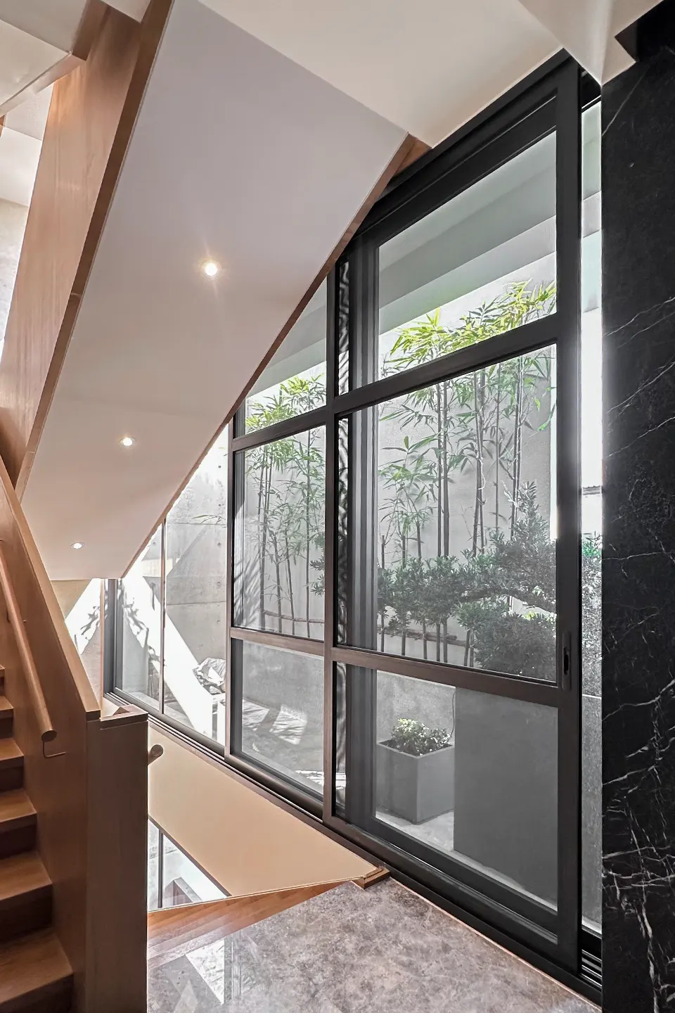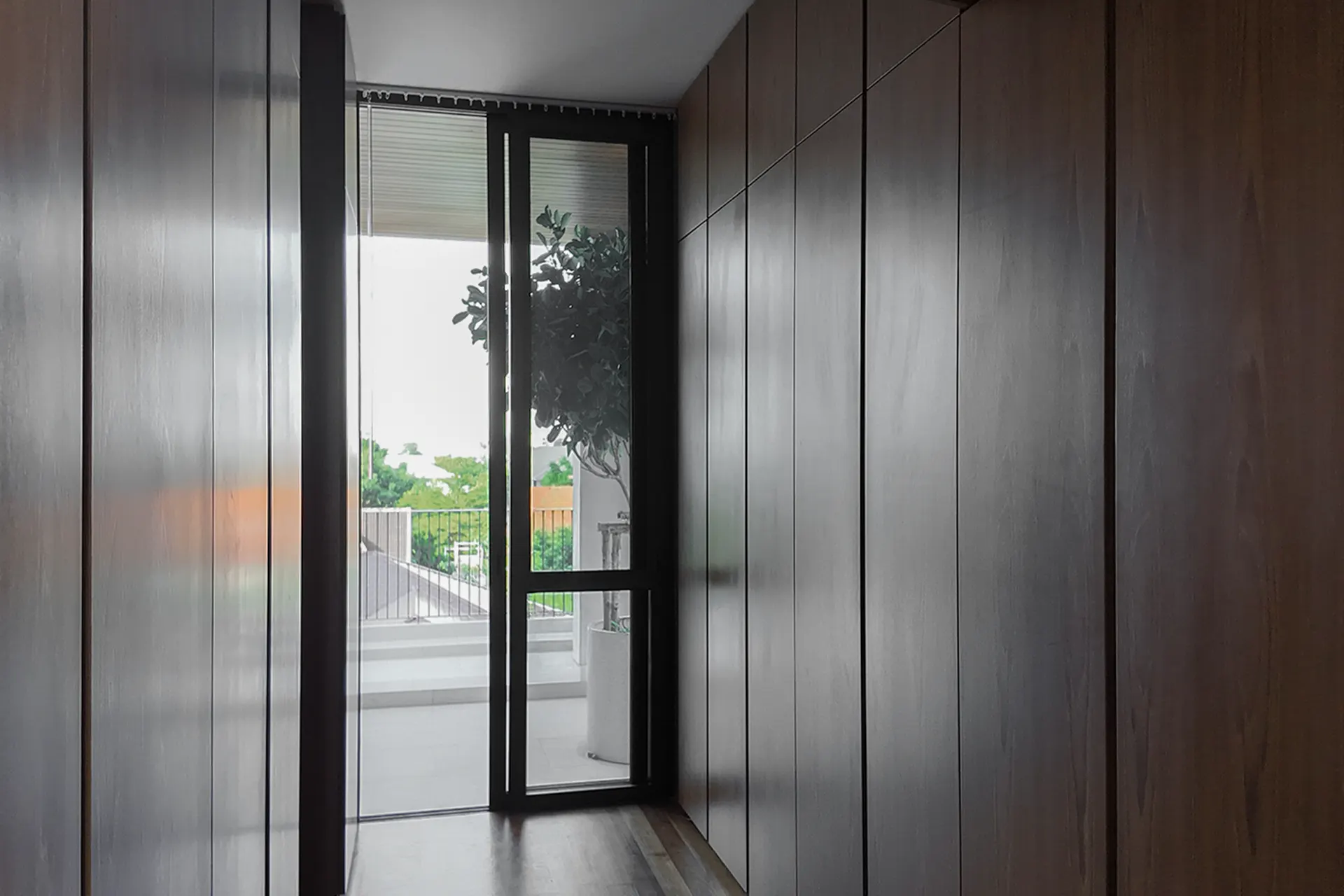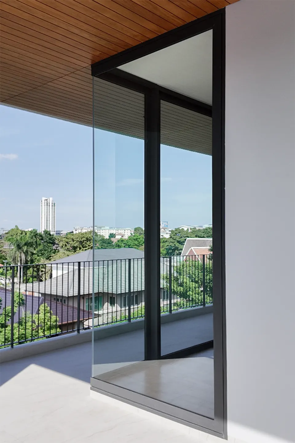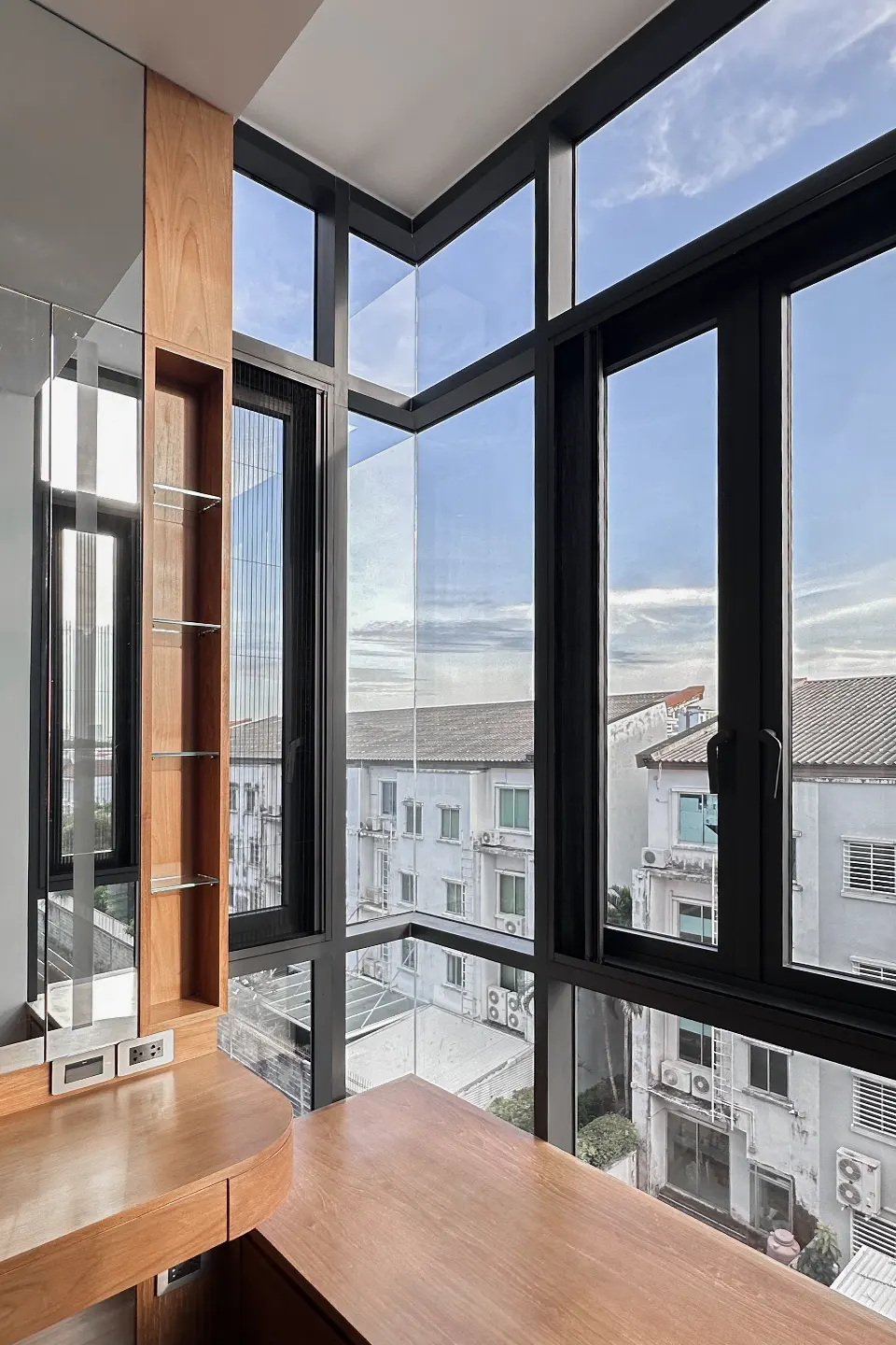 หนึ่งในองค์ประกอบสำคัญคือการใช้ บานประตูและหน้าต่างขนาดใหญ่ เพื่อรับแสงธรรมชาติให้ได้มากที่สุด เทคนิคนี้ช่วยให้บ้านได้ Mood & Tone ที่อบอุ่น โปร่งโล่ง และรู้สึกเชื่อมต่อกับธรรมชาติภายนอก เหมาะอย่างยิ่งสำหรับบ้านที่มีสระว่ายน้ำ มุมสวนหรือพื้นที่สีเขียวในบ้าน