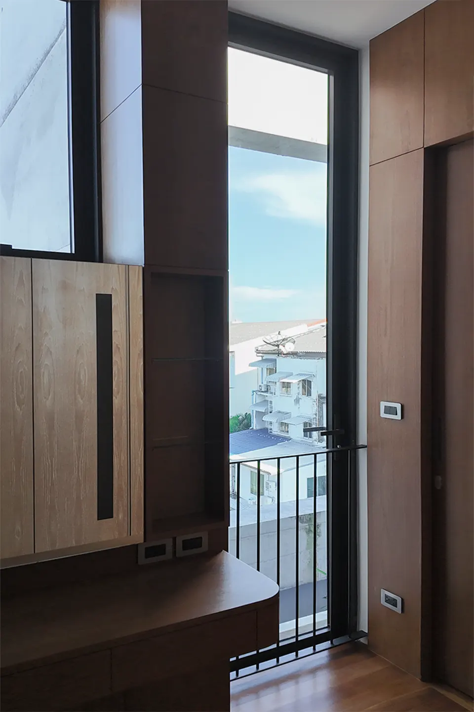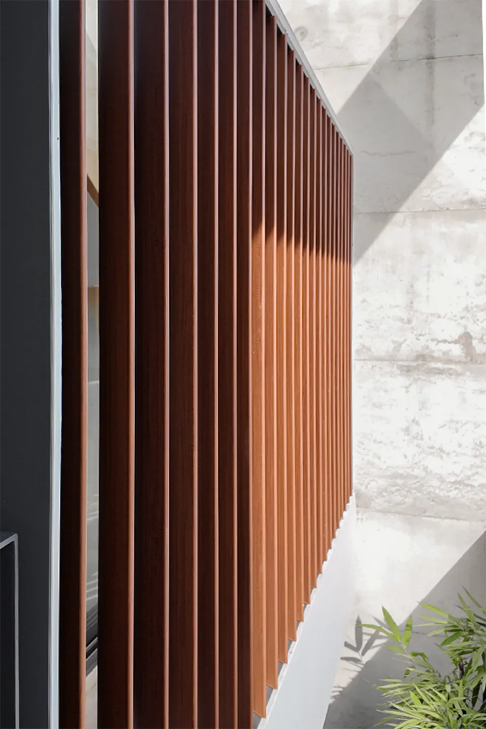 นอกจากเรื่องดีไซน์แล้ว ระแนงยังช่วยให้พื้นที่มีการไหลเวียนอากาศดีขึ้น ทำให้บ้านเย็นขึ้นโดยไม่ต้องเปิดช่องจนเห็นภายในมากเกินไป