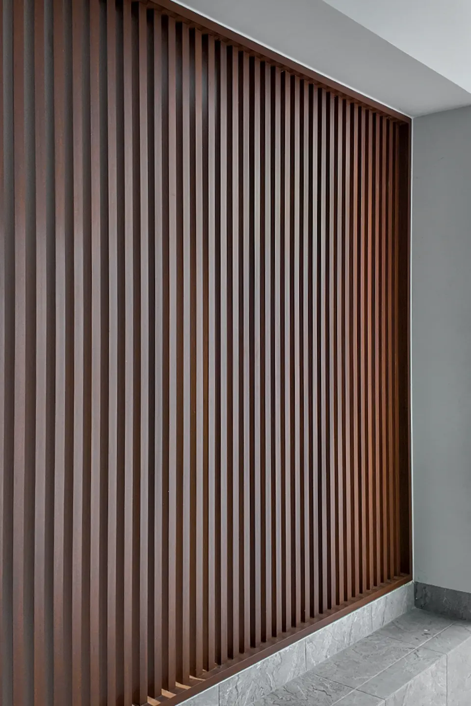 ระแนงช่วยบังสายตาจากภายนอกได้ดี โดยไม่ทำให้บ้านดูมืดหรืออึดอัดเหมาะกับพื้นที่ที่ต้องการความเป็นส่วนตัว เช่น